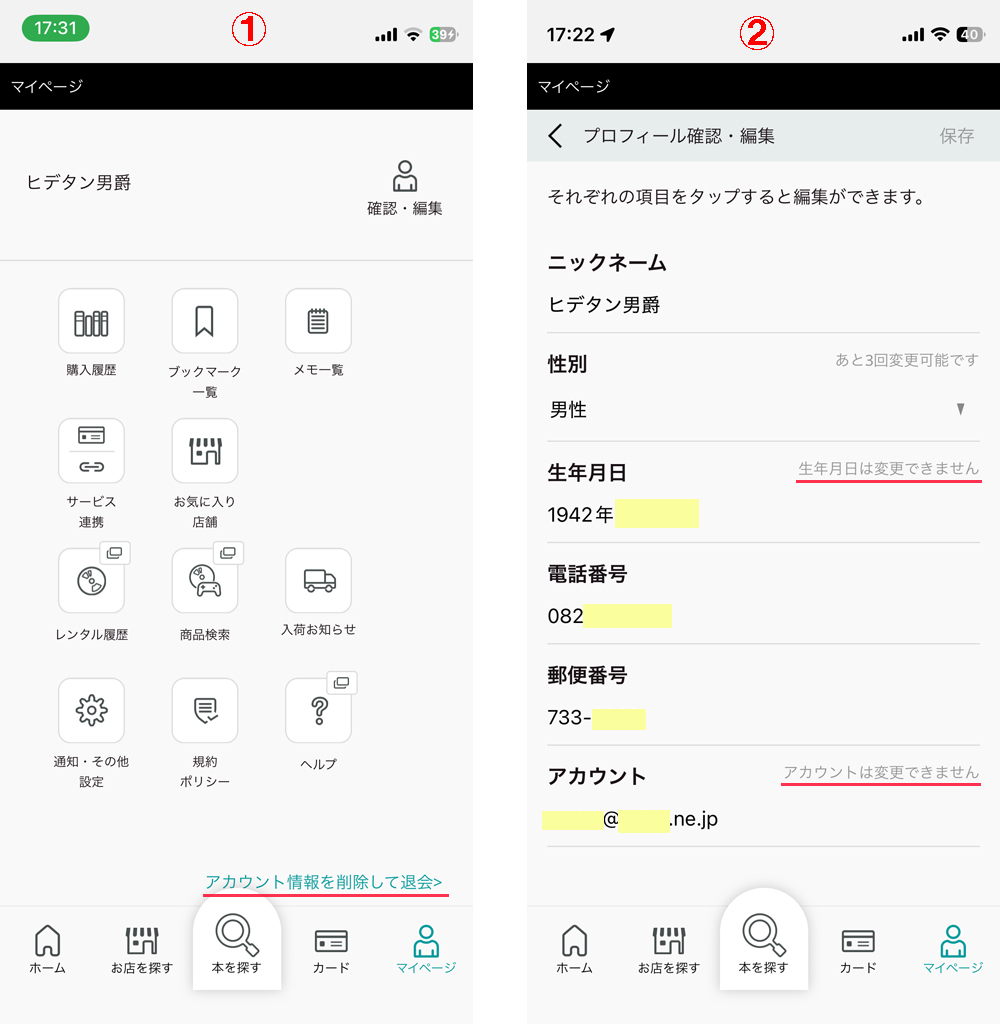 「本コレ」アプリは、新規登録後はログイン状態のままになります。ログアウトするためには、アプリの「マイページ」に移動し、画面下部にある「アカウント情報を削除して退会」から退会手続きをしないとログアウトできないようです。