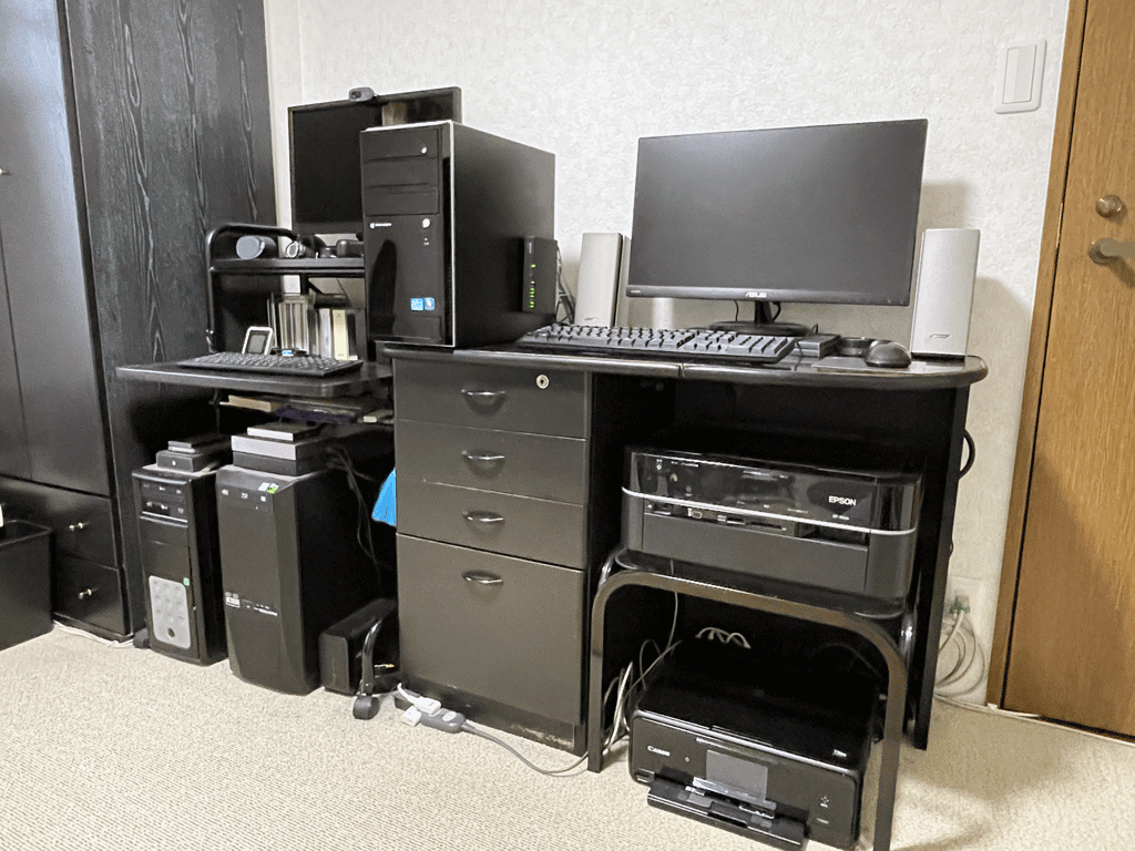 現在、メインで利用しているのは、ゲーミングPCであるドスパラのGALLERIA(ガレリア)です。他に、BTO製品のデスクトップ2台(Vista、Windows7/10デュアルPC)があります。こちらは、購入からから13年~15年経ち、PCリサイクルマーク付きPCなので、廃棄はいつでも可能なのですが、正常に動作しているため処分はしていません。ちなみに、3台のデスクトップPCは、それぞれ「ドスパラ」「パソコン工房」「マウスコンピューター」のショップブランド製品ばかりです。